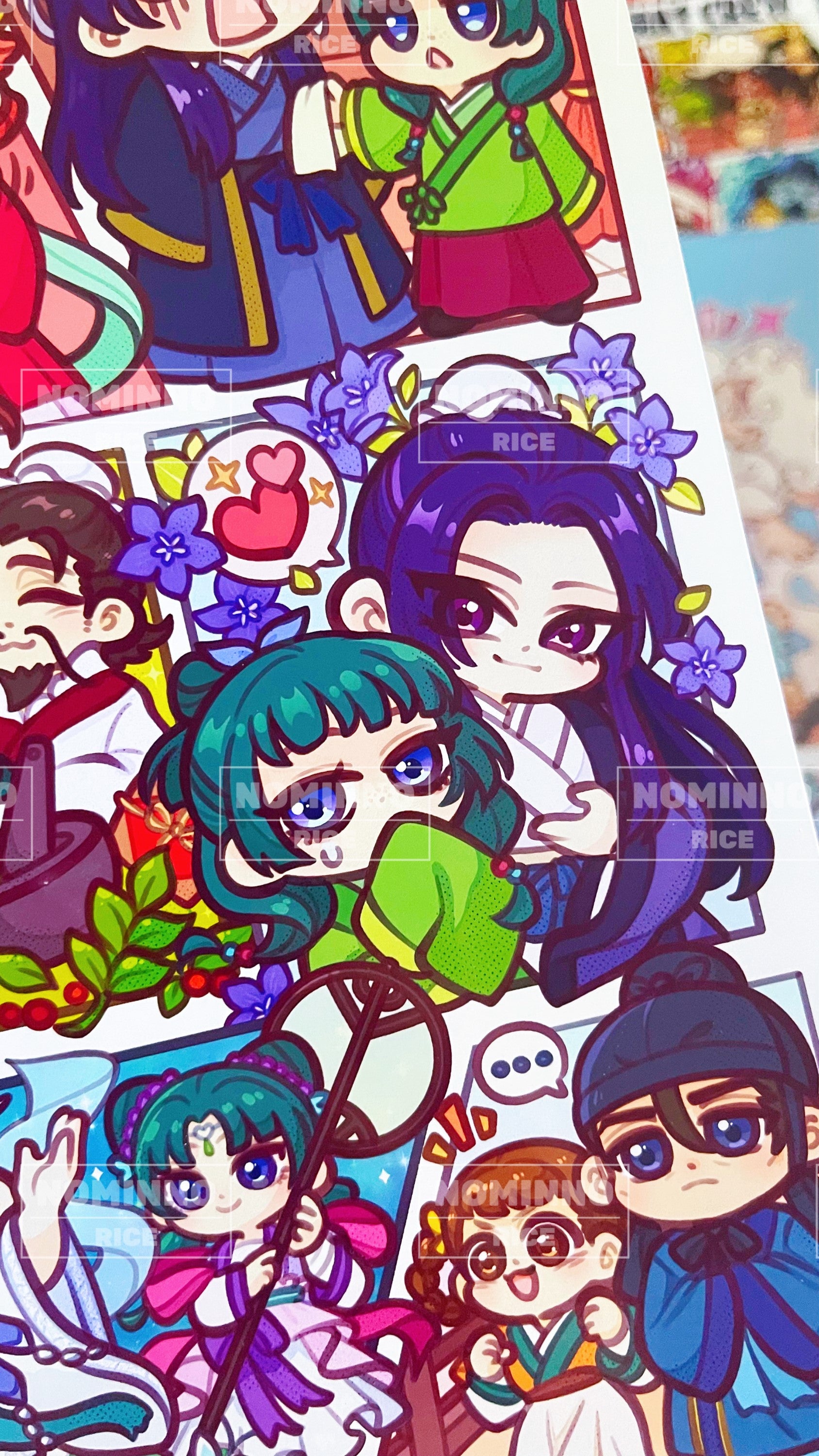 A vibrant A5 print, capturing Maomao, Jinshi, and the rest of the cast in colourful, playful scenes. A perfect addition for fans of the series and lovers of charming, detailed artwork!