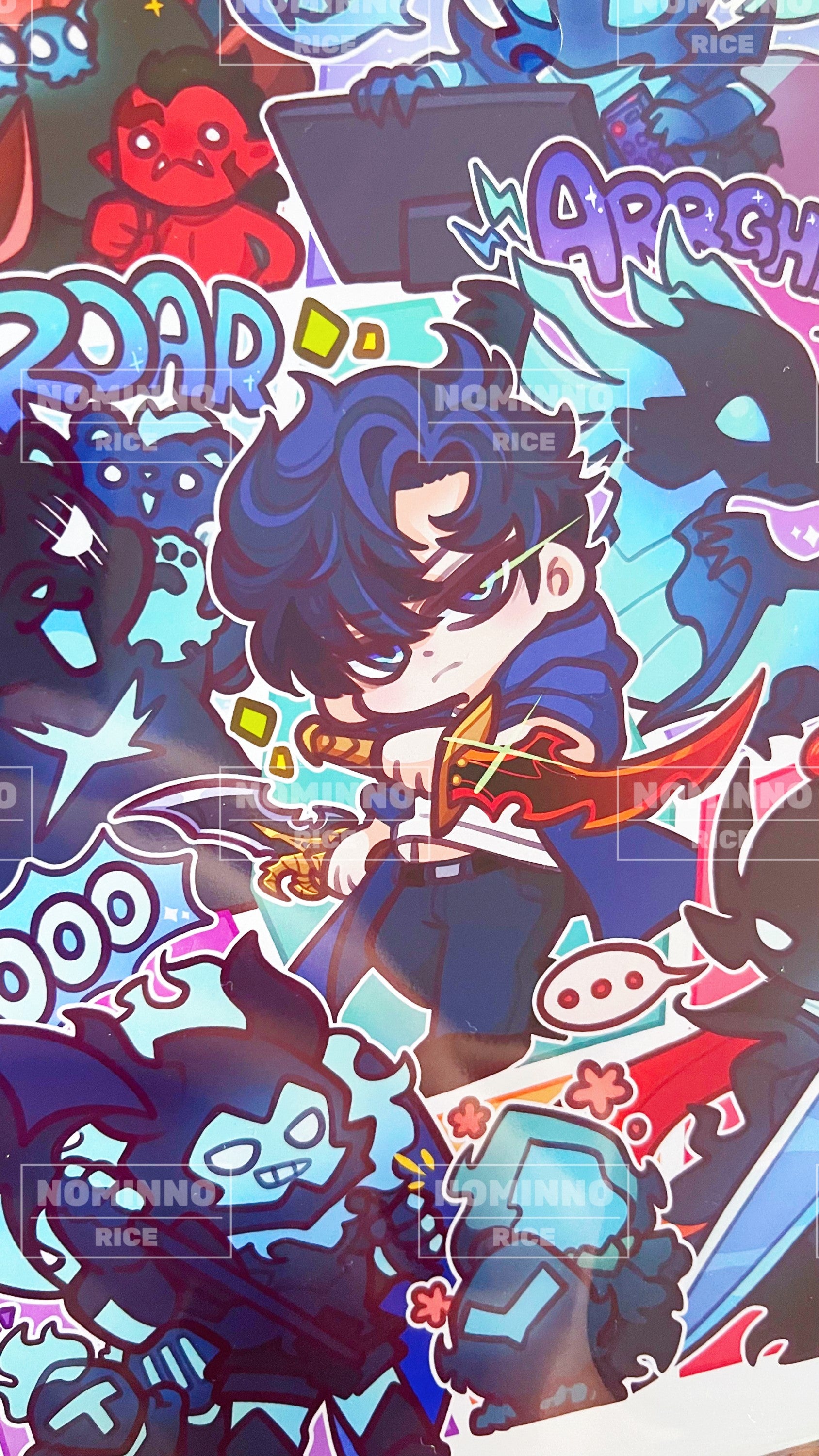 An action-packed A5 print featuring chibi-style art of the Solo Shadow King surrounded by his summoned beasts. A must-have for fans of bold, dynamic artwork!