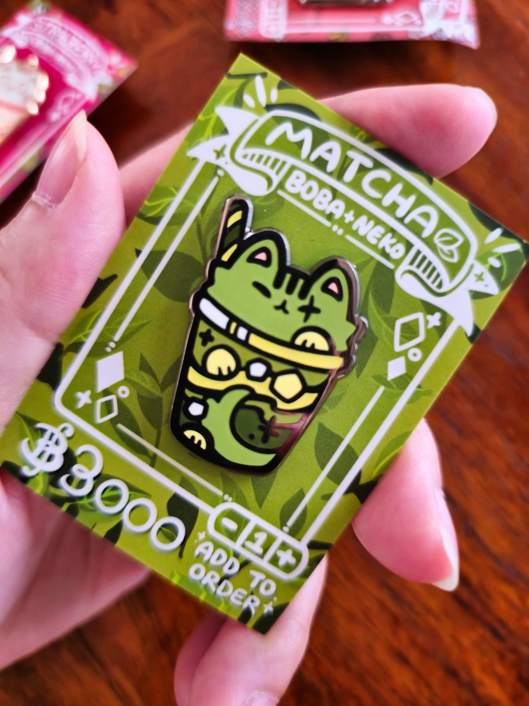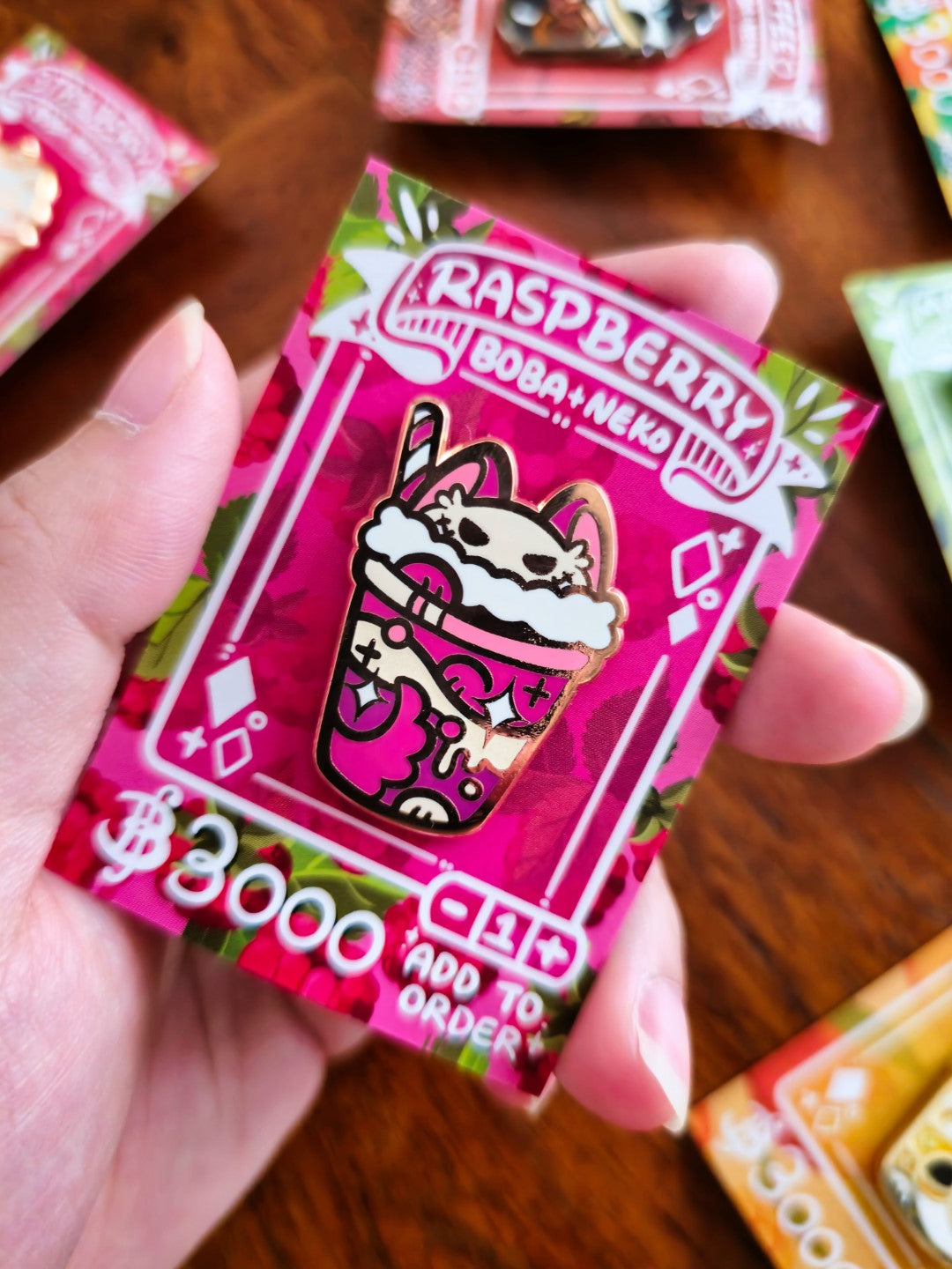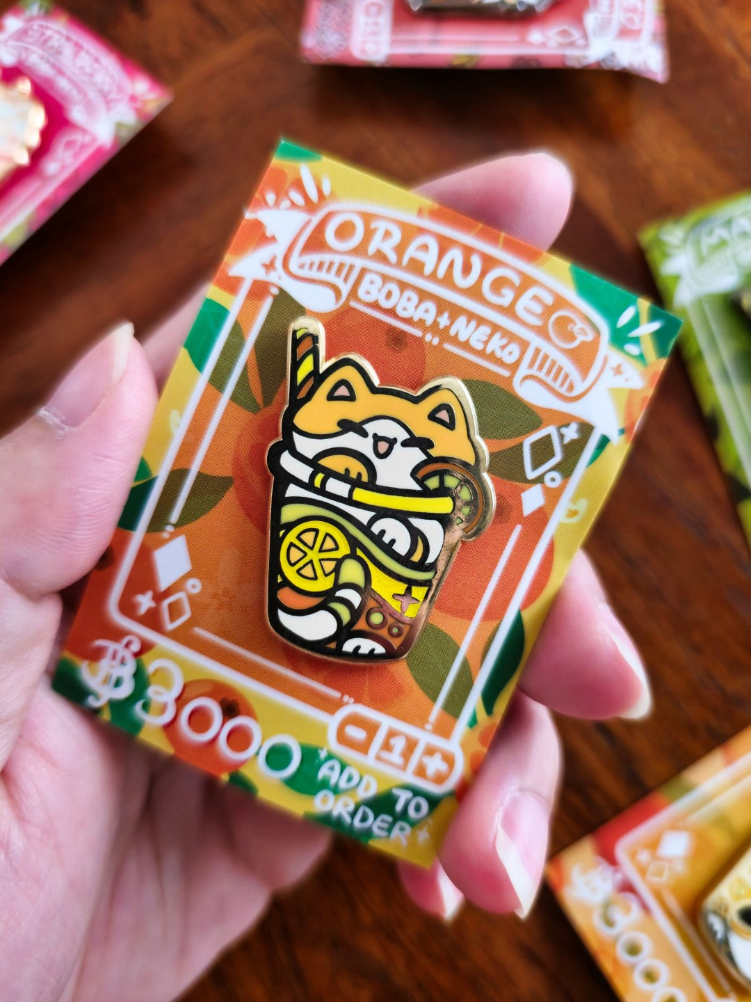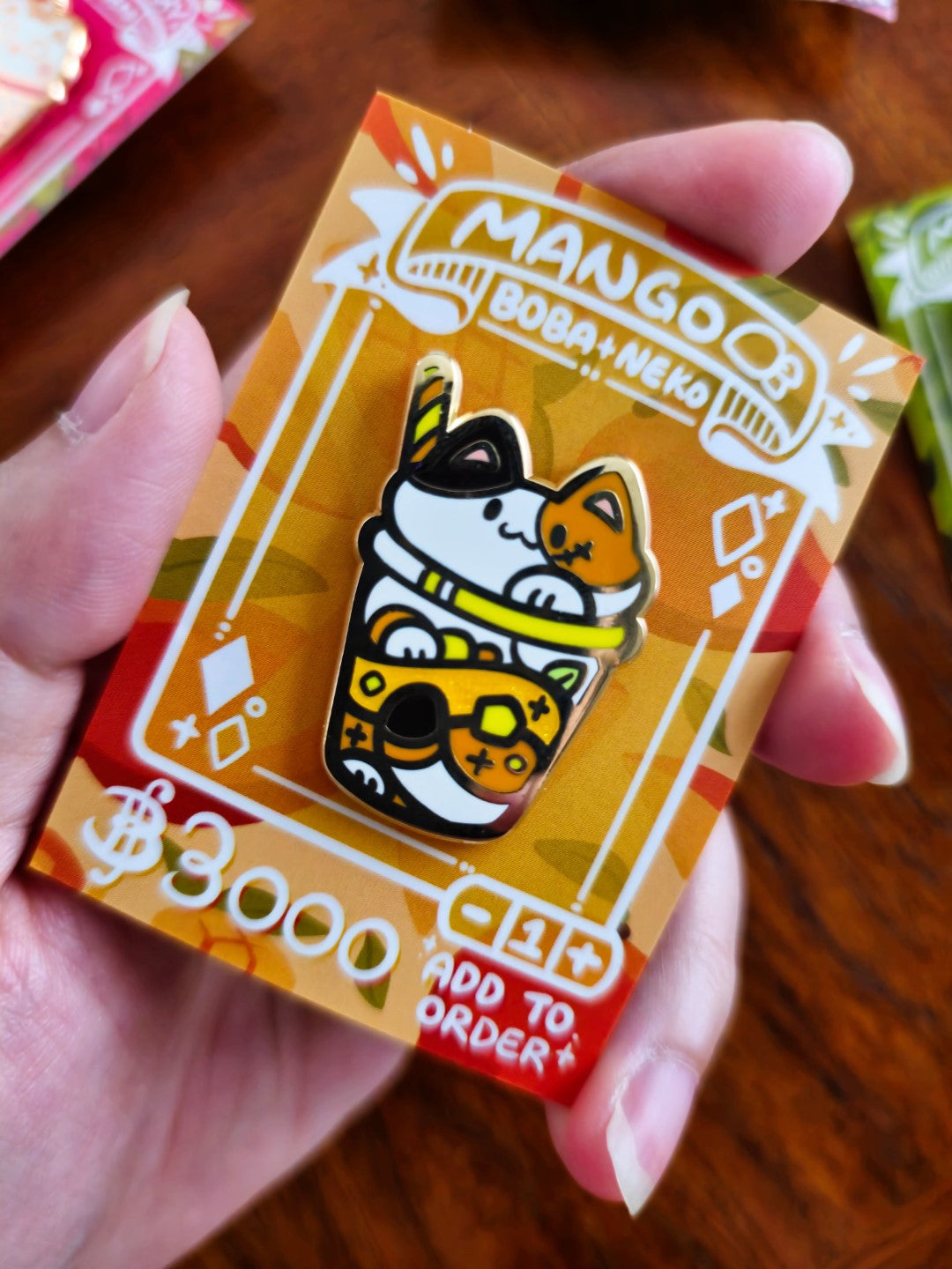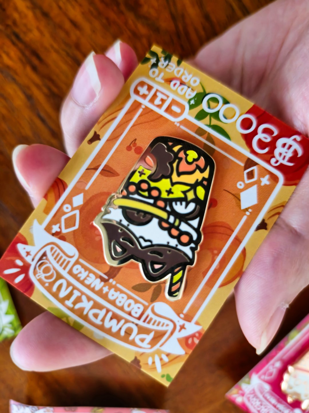9 个 Boba Neko 别针 - 芒果、抹茶、橙子、覆盆子、柠檬、饼干、幽灵、南瓜和咖啡