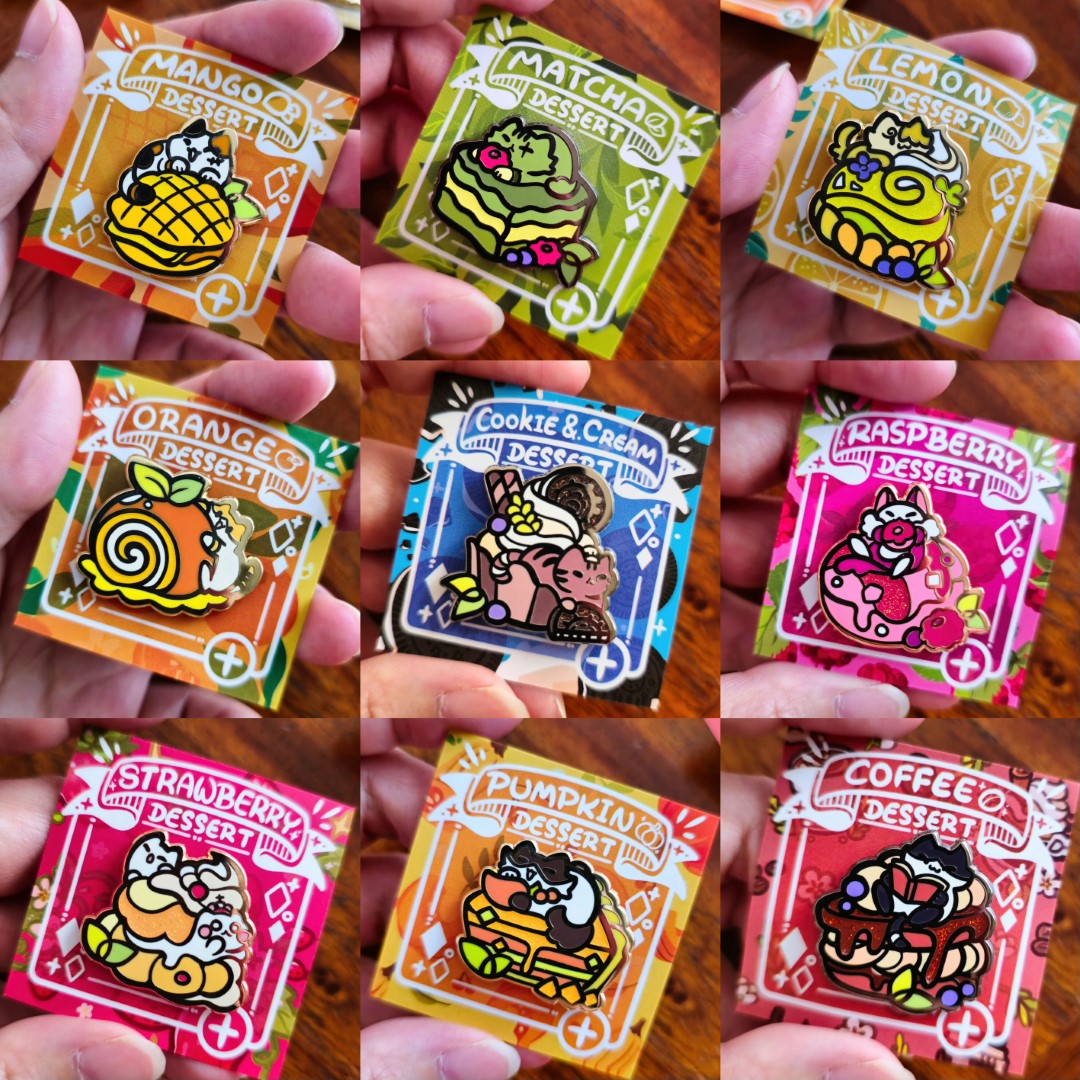 9 个甜品别针 - 幸运包子、提拉米苏、蛋糕卷、甜甜圈、慕斯、杯子蛋糕、泡芙、南瓜派、蛋糕